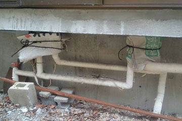 大工さんのアドバイスで風呂場は外の立ち上がりにもシートを巻いた。