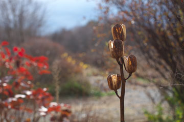 色のほとんどなくなった庭が寂しげだ。来年,またオフクロを楽しませてやってくれよな。…と,土や空気や何だかそういうモノに声をかけてみた。オフクロはあきらかにそれらと会話している。だから,人のことばがわかるにちがいない。