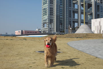 なおみが買い物の間,公園の外れでフェッチしてごきげん。