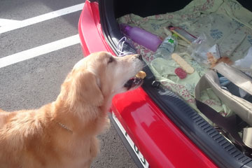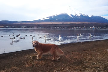 んで,山中湖。水辺で遊んで,タローもすっかりごきげん。