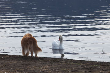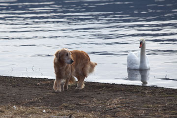 タロー…ま,知らないのはムリないけど,お前のご先祖は水鳥を捕える猟犬だったんだぞ。