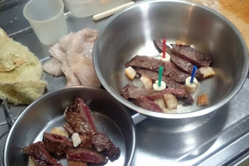 親孝行な好みである。焼き方はレアで調味料は使わない。