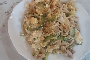 今夜のゴーヤチャンプルはスパムで。
