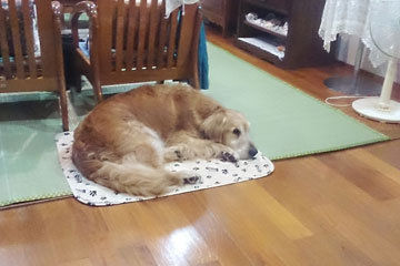 タロー,ダメです。熱中症気味。