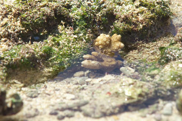 岩を起こすと生育中のサンゴを見つけた。写真を撮って,岩を元に戻した。