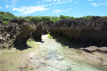 奥の方まで海水が入り込んでいるが,透明すぎてそうとはわからない。