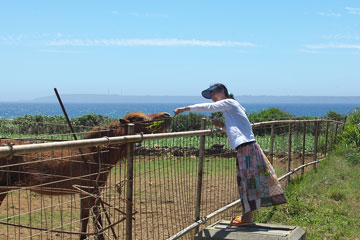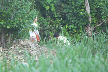 宿の奥さんがお土産に島ラッキョウをボクたちに持たせてくれると言う。畑に収穫に行くから一緒に行こうと誘われていた。夕方になるとよく畑にクジャクが見られるらしい。ボクがカメラに収めたいだろうと思ってのことだ。