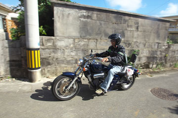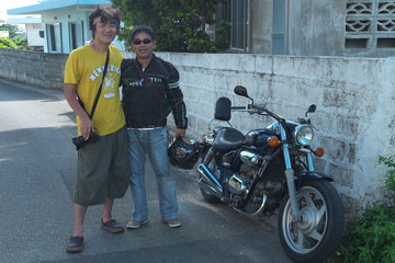 エージさんがナナハンで迎えに来た。エージさんとは初日の止まらない挨拶のときに来て,話に加わり,さらにややこしくした業者である。結局,宿の主人がワゴン車を使って,エージさんがボクらを半日案内してくれることになったのである。