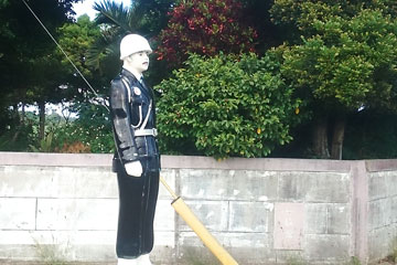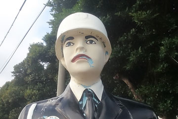 これはけっこう人気の宮古島スペシャルの白ずくめおまわりさん人形,その名も「マモルくん」