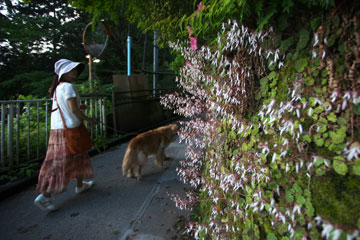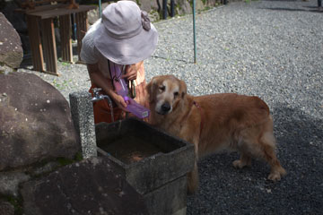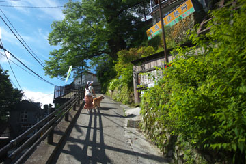 タローを日陰に誘導して,自分は炎天下を歩く。