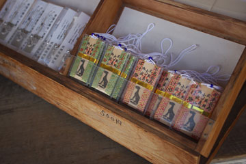 怪我や病気のところ,または予防したいところを犬形の紙でさすって納めると,あとで祈祷して焚き上げてくれる。
