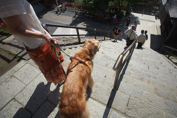 お土産屋さんの並ぶ参道の急坂を抜けて,尚,石段の下