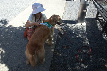 「タロー,sit!!いい子にね。」
