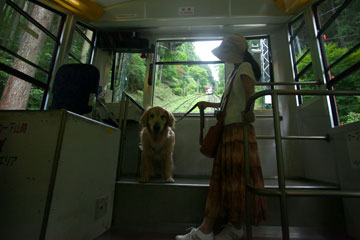 ケーブルカーの中もいっしょ
