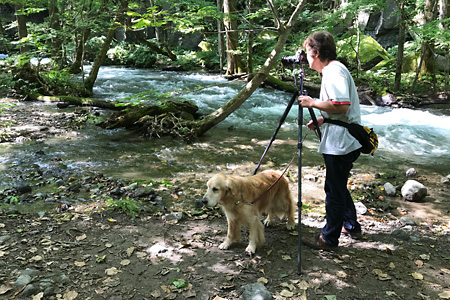 観光バスが着き始め,静かだった渓流は中華な観光客で賑わいだした。
