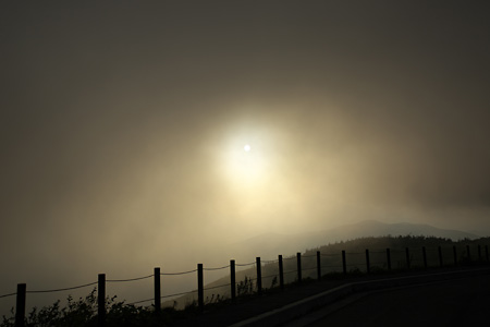 夕焼けを撮ろと山頂まで走ったがあいにくの霧だったので大沼まで戻った。