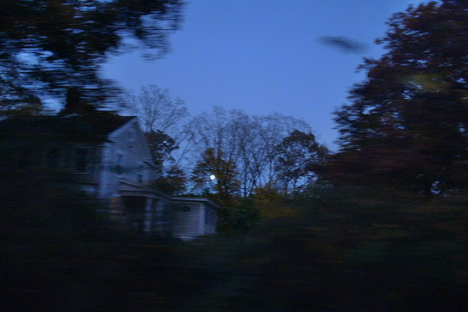 ハロウィンの夜、ニューイングランドの村に昇る満月