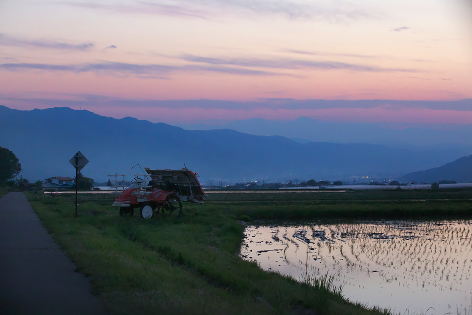 今年は雪が少なかったために水不足で代掻きが襲い。
