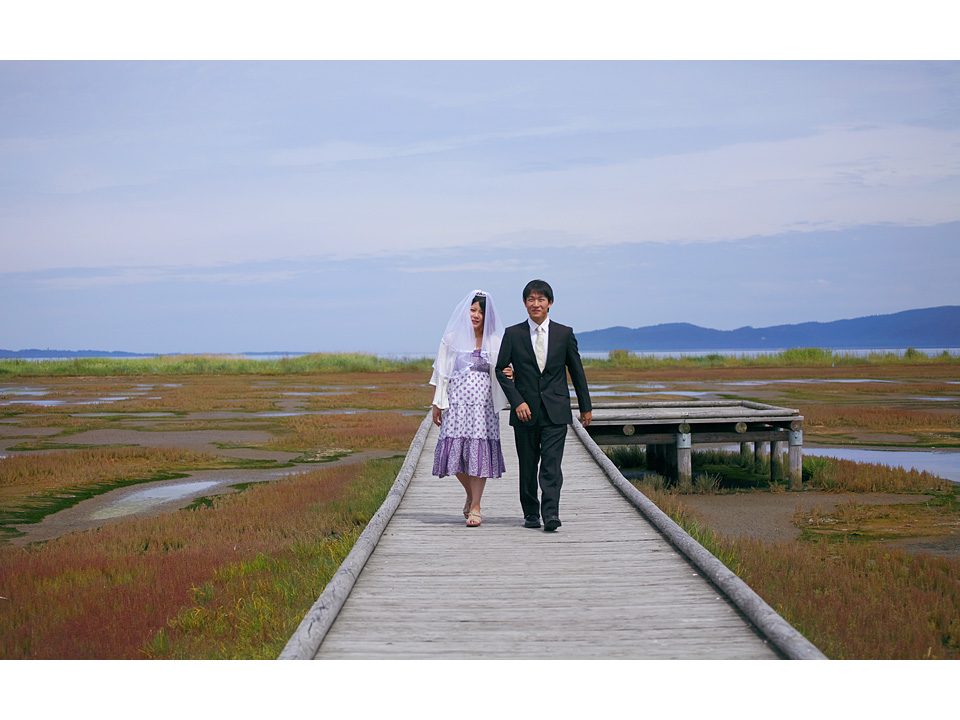 北の岬の結婚式,参列者は二人と一匹。