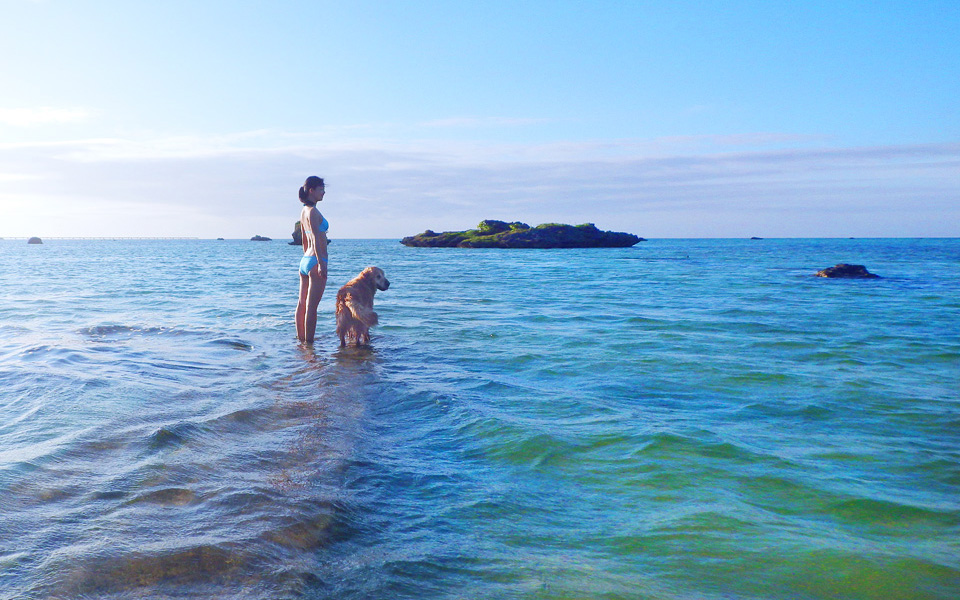 タネを明かすと海中に古い堤防の跡があり,妻と犬はその上に立っているのです。