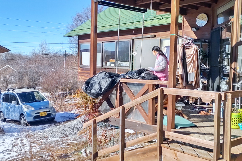 いつまでも雪の中でステイしているのは不憫なので、ベランダに連れてきて