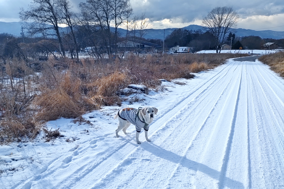 午後9時半頃、なおみを迎えにライフで下りようとすると、たてしな農園の下あたりの凍った坂道で、タイヤがロックしたまま10Mほど滑って横向きに停まった。