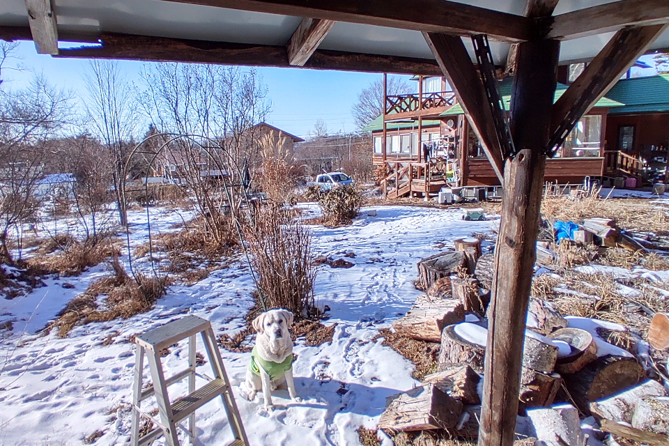 根雪になる前に割った薪を置けるよう薪小屋のペイントを急がねばならない。クレオトップはふんだんに使えて作業もらくちんだ。