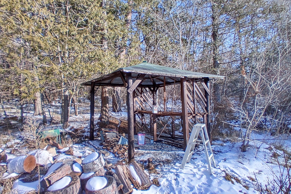 今日は四本柱と、屋根の横木をペイントした。手も足もかじかんでここまでが限界