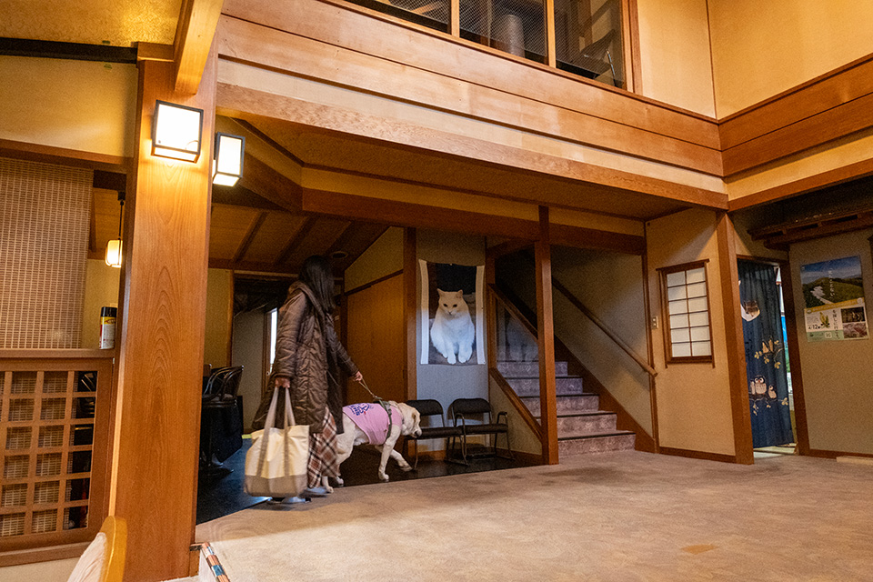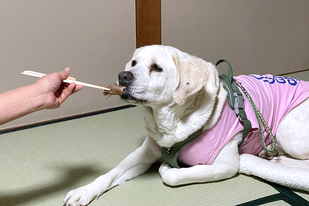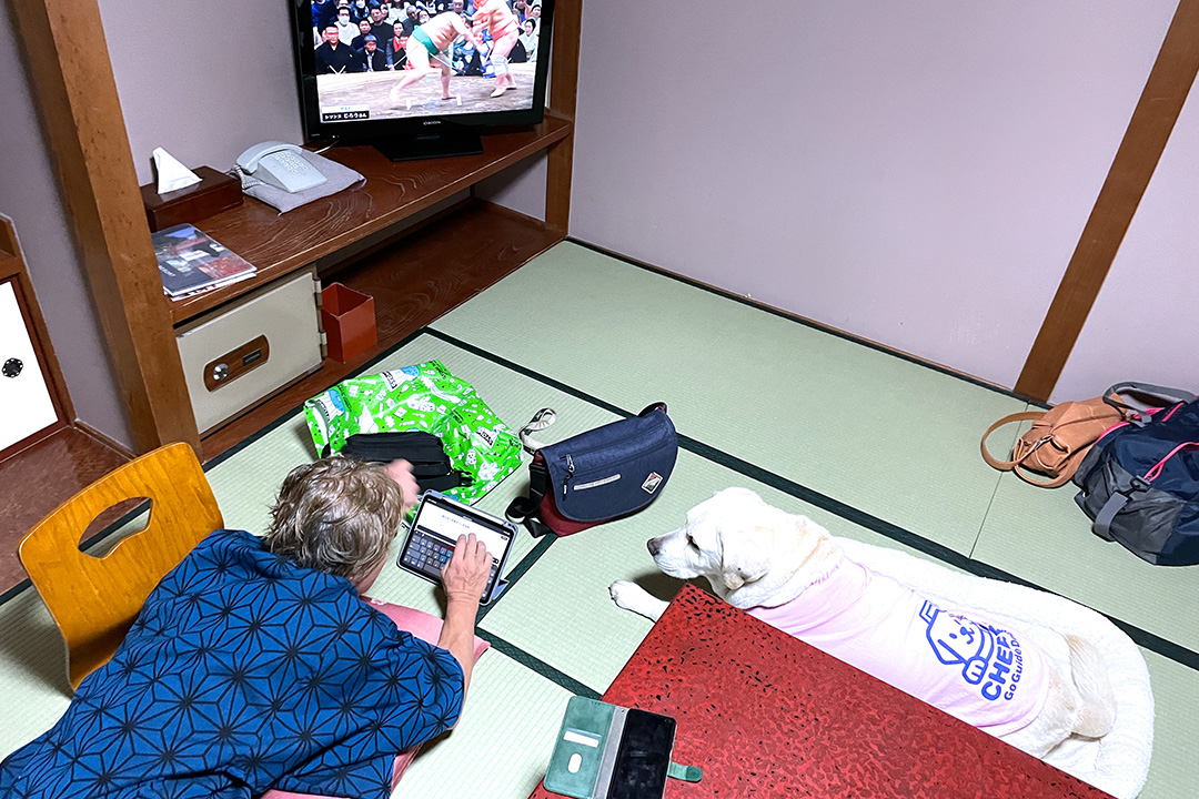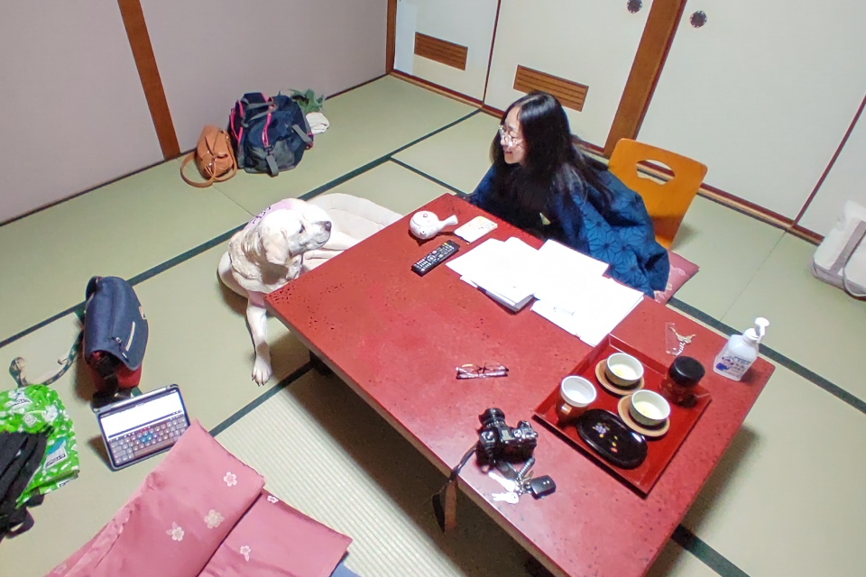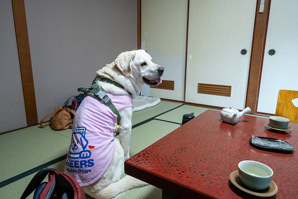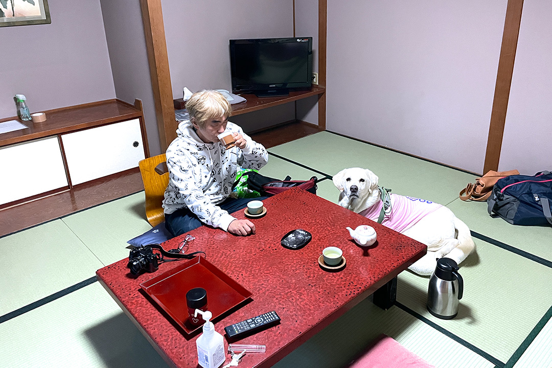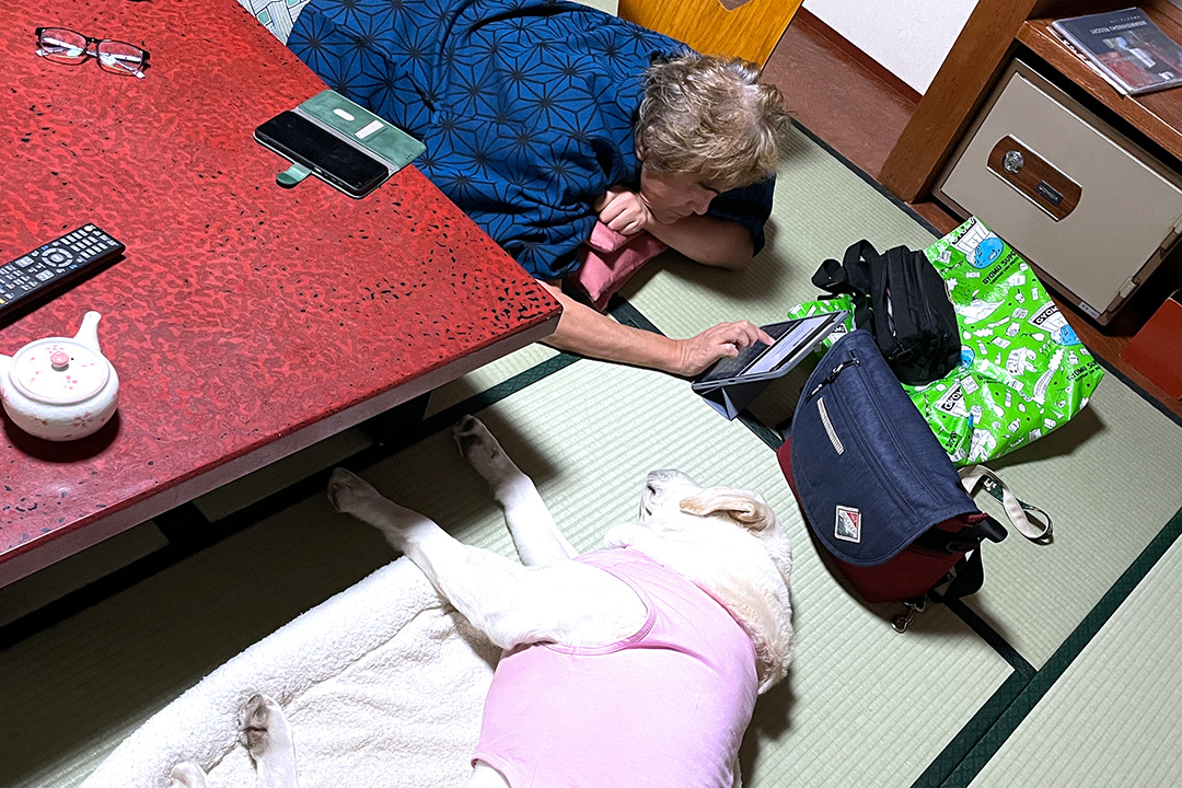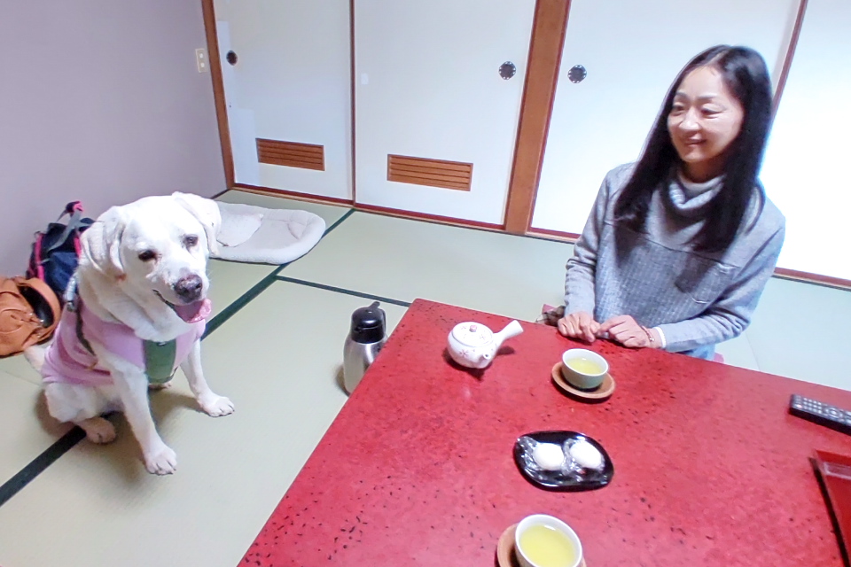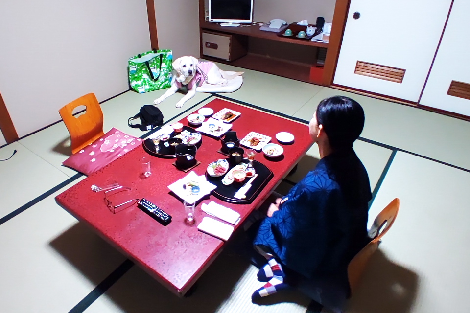 今日はボクたちの貸し切り状態なんだって。犬と座敷に泊まれる好条件、しかも土曜日だから満室だとばかり思っていたけどなんでだろう。