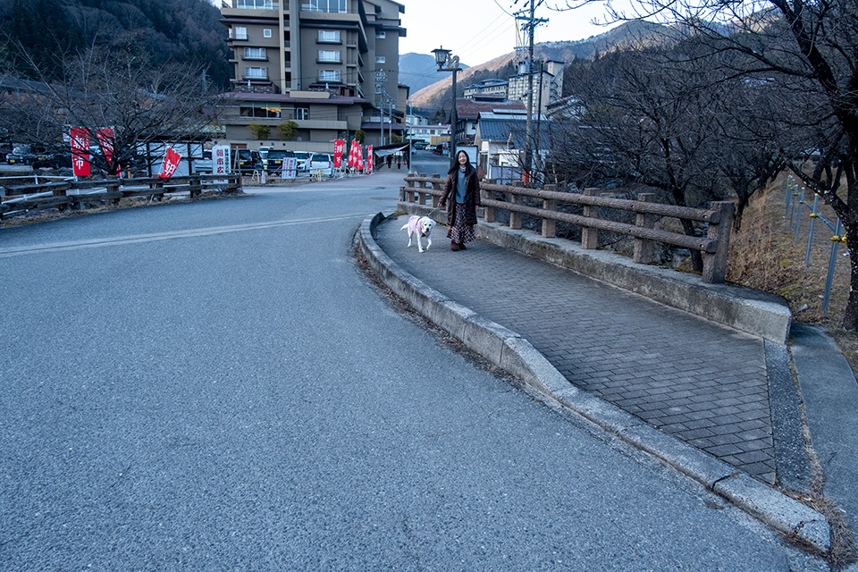 そこで犬と泊まれる温泉宿を予約して昼神温泉に来た。
