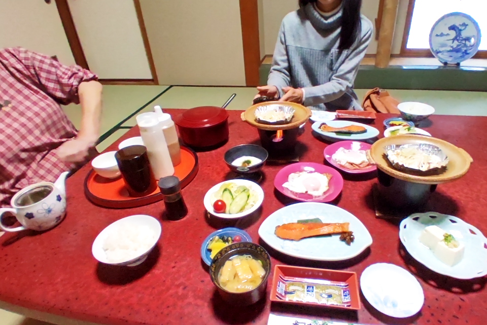 朝食もお給仕してくれる。昼神温泉全体が古き良きこのフルサービスを維持していることから値が張っているものと思われる。