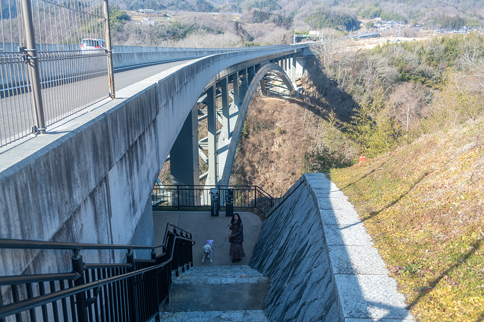 やたらと面白いスポットに当たった。繋がらなかった三遠南信自動車道だが、天竜川を渡る橋付近は高速道路並みの道が完成している。その橋の下が、6年前に歩行者に開放された。