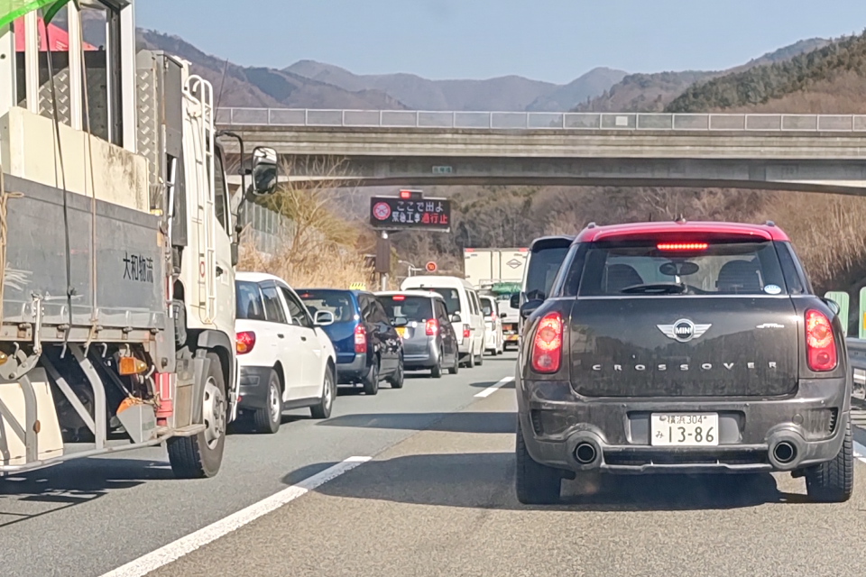 甲州街道の笹子トンネルも一時通行止めだったのでいったん帰ろうかとも思ったが間もなく開通した。