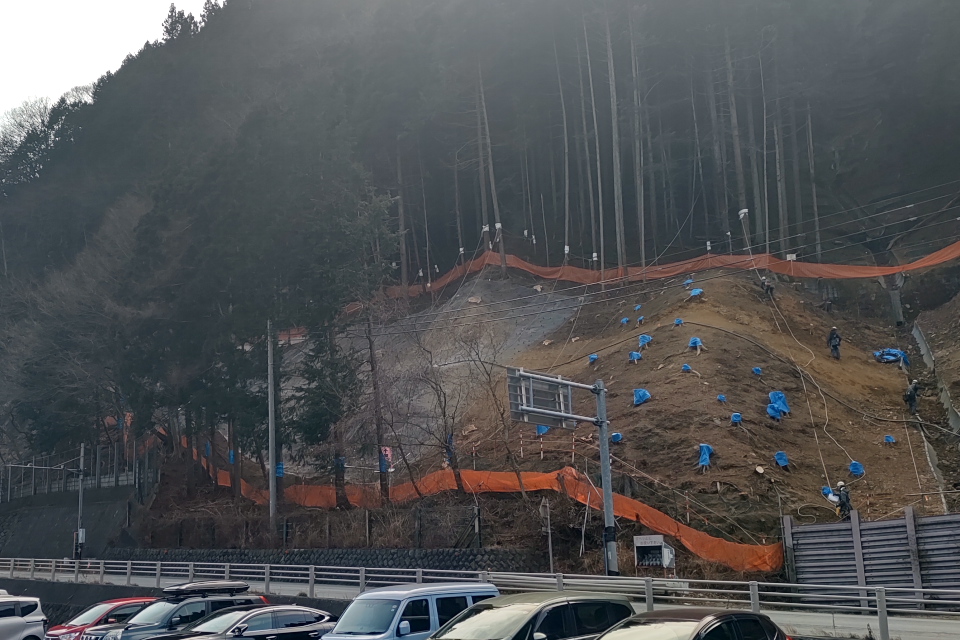 これらの工事の影響らしい。先週あたりから燃え続けている上野原の山火事とは関係がないようだ。
