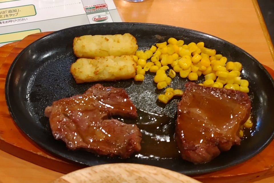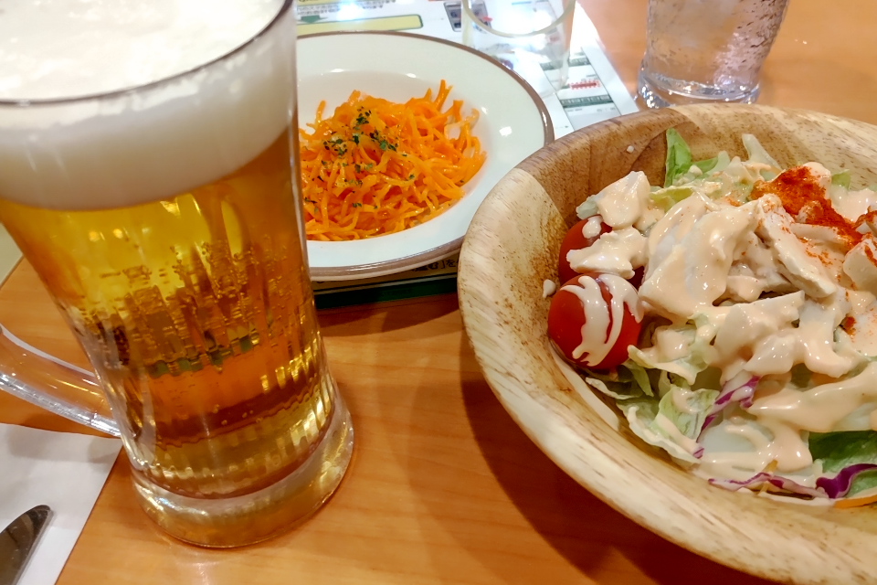 ワインは100円 生ビールにワイン飲んでステーキとサラダ全部で2000円