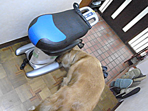 午前中、義父に頼まれて、リサイクルショップで買った家具を運ぶ手伝いに行きました。あいにくの雨で、軽トラックに乗り切れなかったなおみが、店で待っている間に、こんなもの見つけました。最近、腰回りが気になるそうです。
