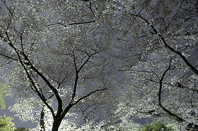 帰宅してタロ散に出ると、遊歩道の桜があまりにもキレイだったので、家にカメラと三脚を取りに戻ると、なおみもどてらを着こんでいっしょについてきました。 撮影している間、なおみは砂利道にしゃがみこんであえぎながら花を見上げています。