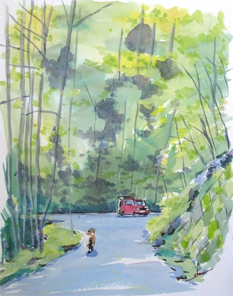 湧き水を飲む F6大 アクリルガッシュ