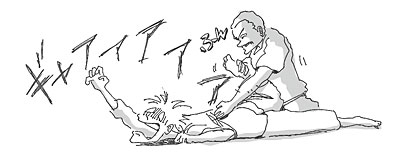 見かねたなおみが、いきつけのマッサージ師に針治療を頼みました。数年前から月に一度ほどなおみが診てもらっているこのマッサージ師。専門はスポーツマッサージです。年中無休ですが、担当する駅伝チームなどが試合の時は帯同するためにお休みになるのです。