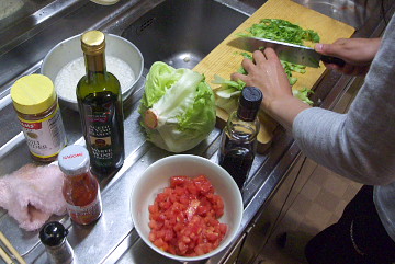 なおみ得意のワカモレやタコライス。早く来た弟に手伝ってもらって、なんとシーザードレッシングも手作り!