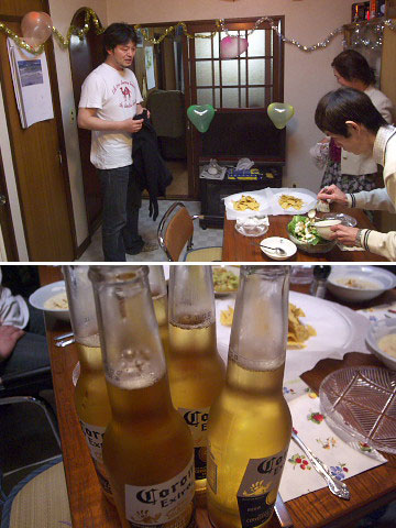 部屋はモールとか風船とか飾り付けされて、いまいちアメリカンというより日本の幼稚園風(笑)…それでもビンのコロナでなんとかメキシカン。
