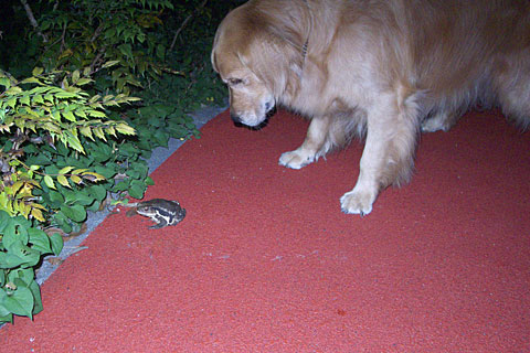 タローはどうも両生類、爬虫類が苦手のようで、いつも「見なかったこと」にして通り過ぎます。