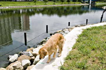 ボールはできないので川沿いを歩きます。