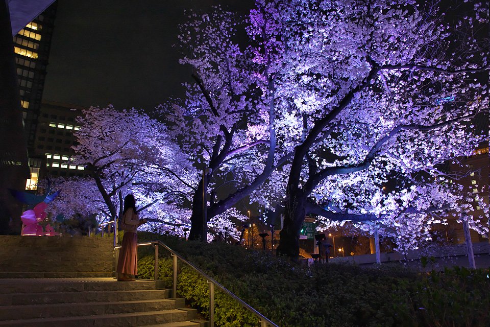 日曜の御苑で撮影したのをきっかけにわずかに意欲が回復した。春期講習が始まっているが居残りがない分,むしろふだんより帰りの時間が早い。桜の濃い場所でカメラの高感度性能にモノを言わせるように夜桜を撮る。