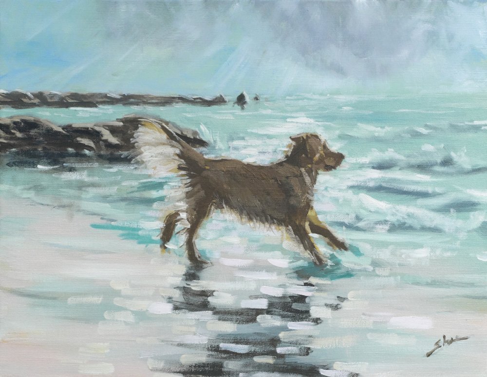 白浜のタローの絵をまた手直しした。穏やかな風景にしていたのを,当日の実景に近い強風の天候へと劇的に変えたら何だかよくなった。