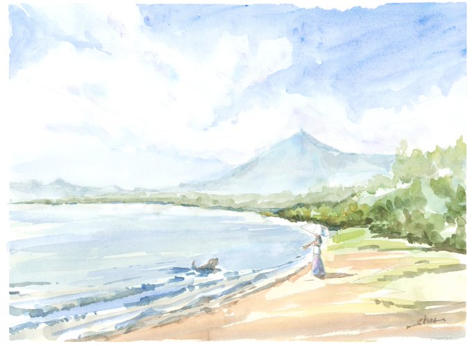 夏…大沼のほとりにて(B4大) 言い訳するわけではないのですがA3で一枚30円の水彩紙が余ったので水張りして使ってみました。さすがに「ムリ」という感じです(;^_^A
