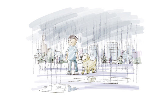 よく降りますねー。 低く垂れこめた雲と地面とが雨でつながってしまいそうです。