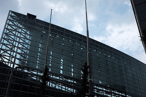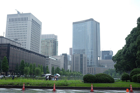 馬場先門で雨が上がり国際フォーラムの上に青空が見える。