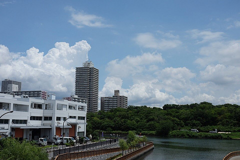 今夜は台風が来るそうですが今は夏空が広がっている。広がっていると言っても東京の空はこんなもの、直線に切り取られた多角形をしている。