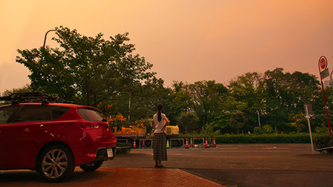 不思議なオレンジ色の夕方…東京に激しい夕立があった。雨が上がり…なおみに呼ばれて外に出てみると町がオレンジ色に包まれていた。気温が一気に6度も下がったそうだ。